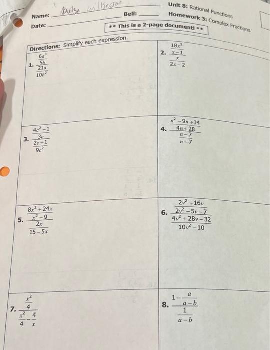 Unit 8 Rational Functions Homework Packet Flip Ebook Pages 1 8 Anyflip